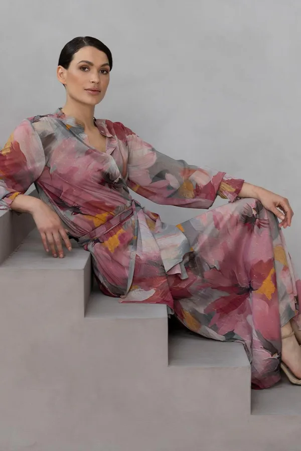 De Irina blouse valt op door haar grafische bloemenprint, verfijnd uitgevoerd met subtiel bronskleurig glansgaren. Dit geeft de stof een lichte, luxueuze glans die het ontwerp net dat beetje extra geeft. De combinatie van een moderne print en elegante details maakt de Irina blouse een tijdloze favoriet, geschikt voor uiteenlopende momenten. Gemaakt van een hoogwaardige mix van polyester en lurex, biedt de blouse een comfortabele pasvorm, blijft zij mooi in model en voelt ze zacht aan op de huid.Stijlvol, praktisch en onderhoudsvriendelijk: de Irina blouse geeft je look een sprankelend accent met een zakelijke, verzorgde uitstraling.