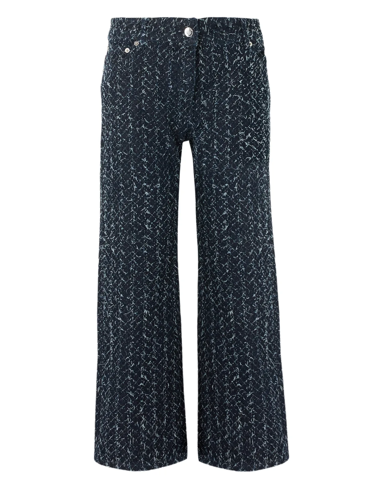 Design: Zakken aan de zijkant, Knop sluiting; Type sluiting: Ritssluiting; Materiaal: Bouclé; Extra's: Studs, Label patch/label flag, Met textuur; Lengte: 3/4 lengte; Pasvorm: Bootcut; Taillehoogte: High waist