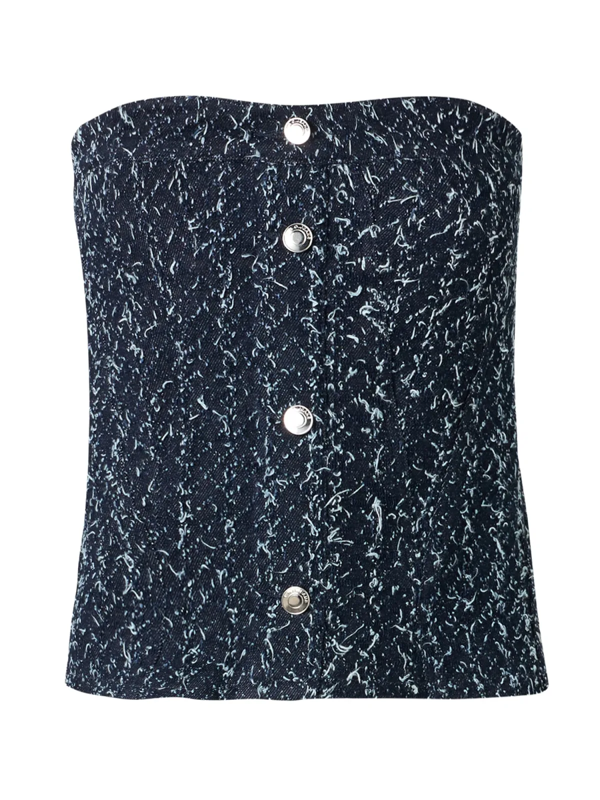 Design: Gevoerde zoom/rand, Rechte zoom, Strapless/off-shoulder; Materiaal: Denim; Motief: Mélange; Soort bandjes: Bandeau; Extra's: Vaste grip, Met textuur; Pasvorm: Slanke pasvorm; Armlengte: Mouwloos; Lengte: Korte pasvorm