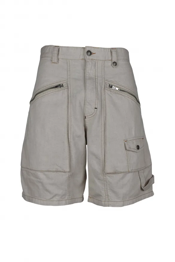 Off-white bermuda van katoenen denim Isabel Marant.Zijzakken met ritssluiting voor.Eén achterzak met ritssluiting en één met knoopsluiting.Hoofdritssluiting en knoopsluiting.Riemlussen.Zichtbare stiksels.