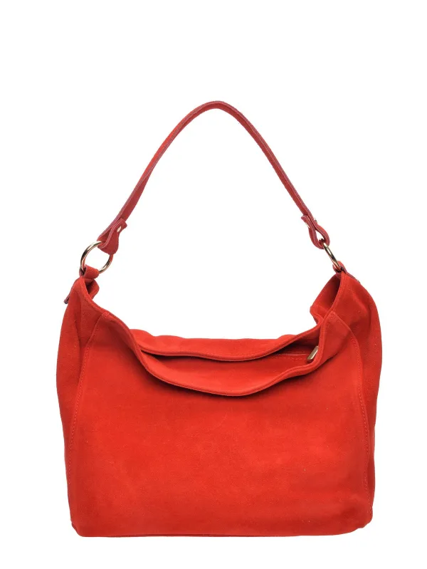 Schoudertas 100% koeiensuède leer Bovenste ritssluiting Goudtoonhardware Stoffen voering met interne ritszak Verwijderbare en verstelbare lange band Afmetingen: 27 x 32 x 11 cm Handvat val: 38 cm Band: 115 cm verstelbaar