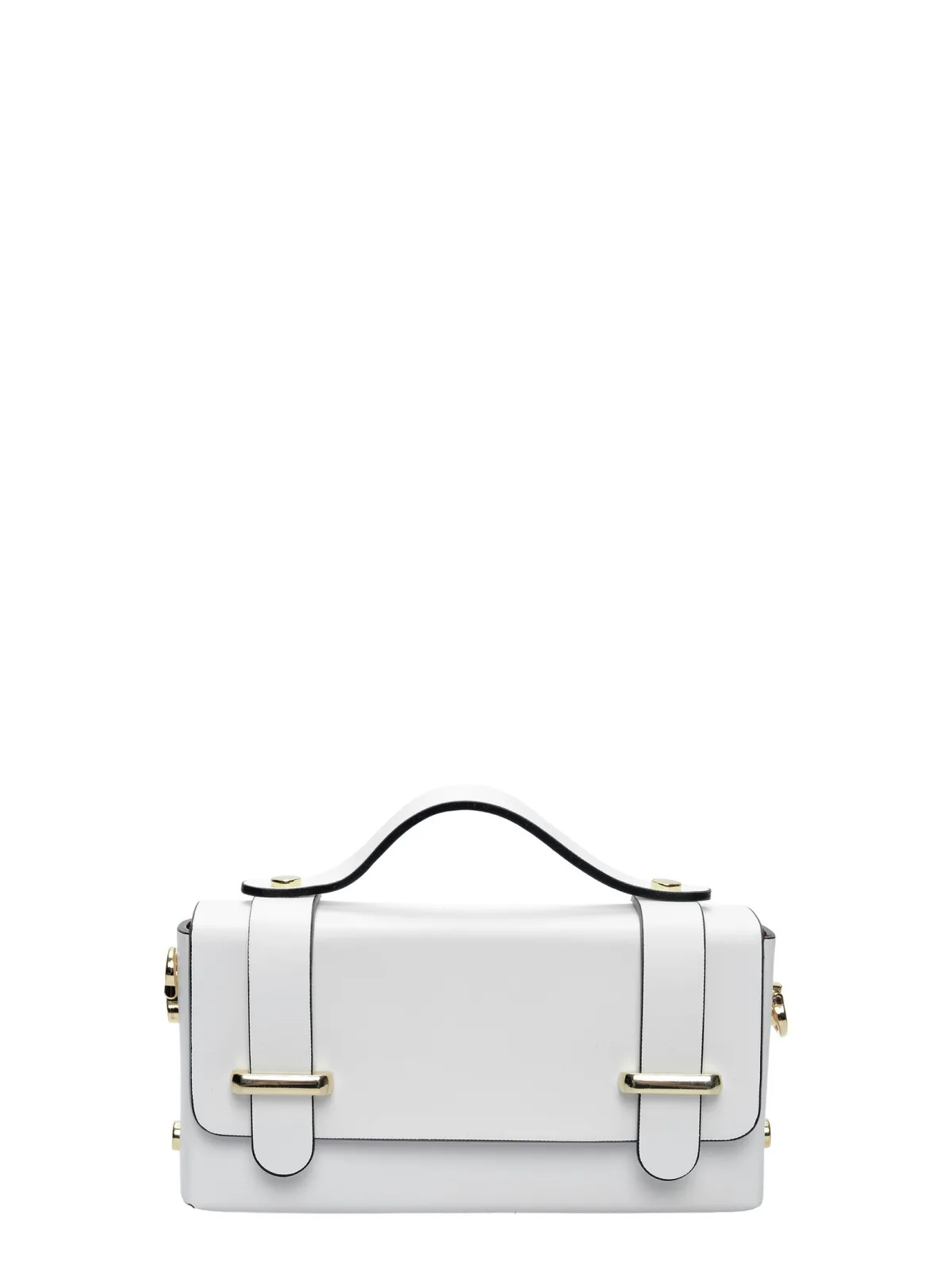 Bovenste Handvattas 100% glad leer Klep met magnetische knopsluiting Enkel handvat bovenop en afneembare schouderriem Contrasterende binnenbekleding Afmetingen: 9 x 18 x 4,5 cm Handvat: 12,5 cm Schouderriem: 110 cm verstelbaar en afneembaar