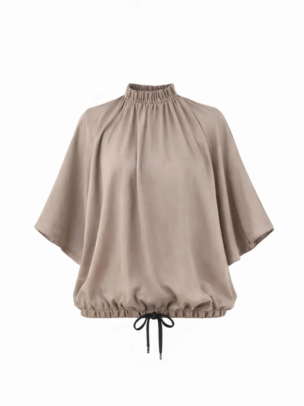 Blouse type: Blouseshirt; Materiaal: Viscose; Motief: Effen; Kraag: Tuniek kraag; Pasvorm: Normale pasvorm; Armlengte: Driekwart mouw; Lengte: Normale lengte