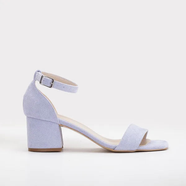 Blokhak sandaal met enkelbandje in premium veganistisch leer. Open teen ontwerp met stevige gespsluiting en 5,5cm hakhoogte. Handgemaakt in Turkije met robuuste blokhak constructie voor dagenlang comfort.