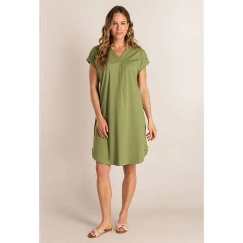 Fris, vrouwelijk en makkelijk te stylen: deze lichtgroene midi jurk voor dames van Ivy Beau is geschikt voor zonnige dagen. De effen lichtgroene kleur geeft meteen een rustige, zomerse uitstraling. Door de middel-lange lengte en de V-hals oogt de jurk zowel casual als verzorgd, ideaal voor naar je werk, een lunchafspraak of een dagje stad.Details die je elke dag wilt dragen Gemaakt van 75% polyamide en 25% elastaan voor een soepele stof met comfortabele stretch Midi lengte die rond de knie valt voor een vrouwelijke, toegankelijke look Korte, rechte mouwen die je armen luchtig bedekken V-hals die het hals- en decolleté subtiel accentueert Zonder sluiting, je schiet de jurk eenvoudig aan en uit Effen ontwerp, makkelijk te combineren met je favoriete sieraden en schoenen Geschikt voor wassen op 30 graden, praktisch in je dagelijkse routineStyling voor zonnige momentenVoor een ontspannen zomerse dag combineer je deze jurk met sandalen en een lichte tas. Met een denim jack en sneakers krijgt de look meteen een meer sportieve draai. Ook met een elegante sandaal met hak is de jurk geschikt voor een etentje of een nette gelegenheid.Ivy Beau in jouw garderobeIvy Beau staat voor draagbare mode met een moderne uitstraling. De collecties sluiten aan op het dagelijks leven, met items die je gemakkelijk combineert en vaak uit de kast pakt. Zo voeg je met deze jurk een praktisch item toe aan je garderobe.Een zomerjurk die geschikt is voor de hele dag dragen.