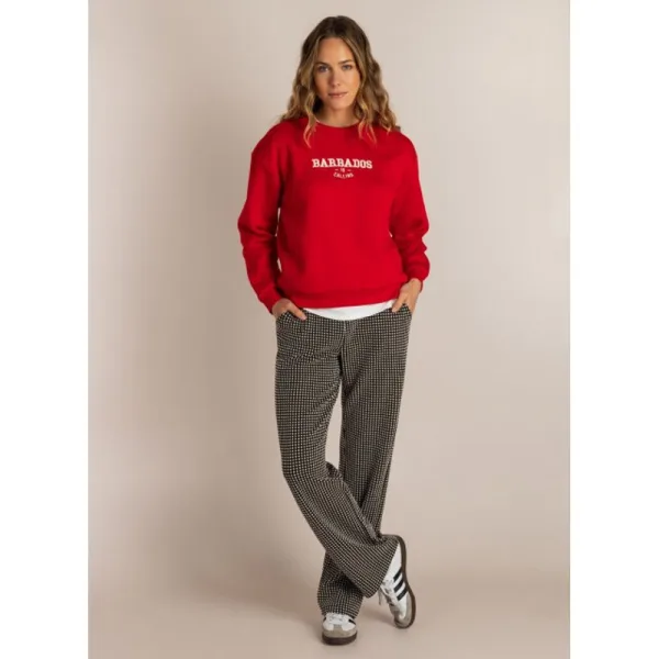 Barbados roept! Deze rode trui straalt zomerse energie uit, zelfs op koude dagen. De zware katoenmix voelt heerlijk comfortabel aan en behoudt prachtig zijn vorm. Draag hem casual met je favoriete jeans of kies een maat groter voor een nonchalante, oversized look. Materiaal 63% Cotton, 37% Polyester Lengte 64 cm Binnenkant trui geborsteld