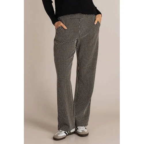 Deze zwart-witte Ivy Beau broek is een praktische basis voor elke dag. De rechte pijp, hoge taille en elastische band zorgen samen voor een ontspannen pasvorm die netjes oogt. Door de all over print in zwart en wit past de broek makkelijk bij effen tops, truien of een blazer. Het materiaal met viscose en elastane voelt soepel aan en beweegt prettig met je mee tijdens een drukke dag.Zwart-wit print met comfortabele pasvorm Rechte fit voor een rustige, verzorgde look Hoge taille met elastische tailleband voor extra draaggemak All over print in zwart en wit voor een rustige uitstraling Lange pijpen, geschikt voor zowel casual als meer geklede combinaties Gemaakt van 75% polyester, 20% viscose en 5% elastane voor een soepele stof met lichte stretch Sierzakken aan de voorkant en zakken achter voor een afgewerkte lookGeschikt voor werk en vrije tijdDe broek leent zich goed voor zowel werkdagen als vrije tijd. In een werkomgeving sluit de print rustig aan bij effen blouses of tops, terwijl in het weekend een T-shirt, trui of sneakers net zo goed passen. De zwart-wit print maakt accessoires in neutrale tinten of in een accentkleur mogelijk.Ivy Beau: eigentijdse mode met aandacht voor detailIvy Beau ontwerpt kleding die past bij een volle agenda en een moderne levensstijl. Het merk besteedt aandacht aan pasvorm, draagcomfort en details, zodat elke stijl er verzorgd uitziet en praktisch blijft in het dagelijks gebruik.Een broek die in veel situaties past, of je nu naar kantoor gaat of een ontspannen dag plant.