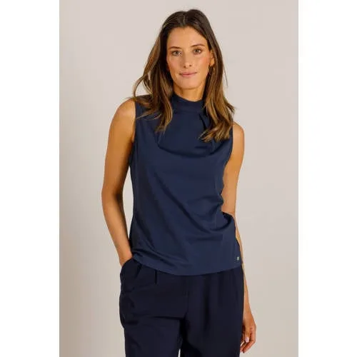 Elegant én praktisch! De Vianna top is gemaakt van gladde, kreukvrije travelstof en heeft een turtle neck met een verfijnde plooi bij de hals. Dankzij het knoopje op de rug trek je hem makkelijk aan. In off white en dark blue – een musthave basic met klasse. Materiaal: 79% polyamide 21% elastaan. Pasvorm; Regular Fit Lengte 58,5 cm. Product Type: Jersey.