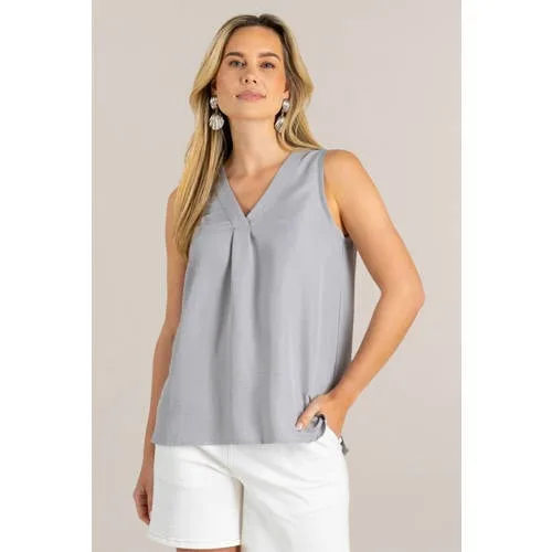 Deze mouwloze dames top van Ivy Beau is een praktische basic voor zonnige dagen en frisse laagjes. De top is uitgevoerd in een neutrale grijze kleur die gemakkelijk combineert met je favoriete broeken, rokken en shorts. De V-hals zorgt voor een open uitstraling en laat ruimte voor een ketting. De soepele stof valt licht om je lichaam en voelt zacht aan op de huid, geschikt voor dagelijks gebruik in de zomer.Details voor dagelijks gebruik Grijze kleur die makkelijk te combineren is met verschillende stijlen Mouwloos model, fijn voor warme dagen of onder een blazer of vest V-hals voor een open halslijn Geen sluiting, je trekt de top eenvoudig over je hoofd aan Effen ontwerp uit de Daily collectie, passend bij alledaagse looks Wasbaar op 30 graden, handig in het onderhoudVoor dagelijkse outfits in de zomerDeze top past goed bij een jeans voor een casual dag, maar ook bij een nette broek of kokerrok voor op kantoor. In de zomer draag je de top gewoon zo, op koelere dagen is het een lichte basis onder een blazer of vest.Ivy Beau stijlIvy Beau richt zich op vrouwen die graag makkelijk combineren. De collecties bieden toegankelijke mode met een eigentijdse stijl, zodat je met weinig moeite een complete outfit samenstelt.Een praktische grijze top die in elk seizoen van pas komt.