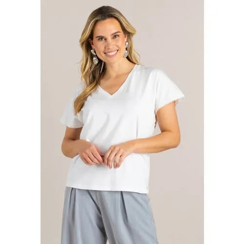 Met deze witte Ivy Beau top voor dames heb je een lichte basic die je makkelijk combineert op warme dagen. De top heeft een V-hals en korte, rechte mouwen, waardoor hij luchtig draagt en toch netjes oogt. De effen kleur maakt het een praktische basis voor zowel casual als meer geklede outfits.Details die je elke dag draagt Gemaakt van 48% Modal, 48% Cotton en 4% Elastane voor een zachte, soepele touch V-hals die het hals- en neklijn subtiel accentueert Korte, rechte mouwen voor een lichte, zomerse uitstraling Effen wit, makkelijk te combineren met broeken, rokken en shorts Zonder sluiting, je trekt de top eenvoudig over het hoofd aan Onderdeel van de 'Daily' collectie, ideaal voor alledaags gebruik Wasbaar op 30 graden, praktisch in onderhoudLichte top voor zomerse dagenDeze top past goed bij een jeans, linnen broek of een luchtige rok. Door het soepele materiaal voelt hij prettig aan op de huid, ook op warmere dagen. Draag hem los over een broek of licht ingestopt in de taille voor een wat gekledere look.Ivy Beau, kleding voor elke dagIvy Beau ontwerpt mode die aansluit op het dagelijks leven, met oog voor pasvorm en draagbaarheid. De collecties volgen de trends, maar blijven tegelijkertijd toegankelijk en makkelijk te combineren. Zo vul je je garderobe met items waar je vaak en graag naar grijpt.Een praktische witte top die je garderobe op een heldere manier aanvult.