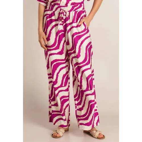 Deze Ivy Beau wide leg broek in roze/ecru voegt met het lange, soepelvallende model makkelijk iets nieuws toe aan je dagelijkse outfits. De wijde pijpen en het all over dessin maken het een item dat prettig draagt en goed past bij verschillende tops. De elastische tailleband met koord zorgt voor extra comfort en een ontspannen fit rond je middel.Zachte stof en relaxte pasvorm Wide leg model voor een luchtig silhouet en veel bewegingsvrijheid rond je benen Regular waist met elastische tailleband en koord voor draaggemak en een flexibele pasvorm Gemaakt van 80% viscose, een zachte stof die prettig aanvoelt op de huid Voorzien van zakken voor, handig om kleine essentials bij de hand te houden All over print in roze/ecru voor een rustig dessin met subtiel kleurcontrast Wasbaar op 30 graden, praktisch in je wekelijkse wasroutineIdeaal voor zomerse dagenDe broek komt uit de 'Daily' collectie en is geschikt voor warme zomerdagen. Combineer met een eenvoudige top en sandalen voor een ontspannen set, of draag er de bijpassende co-ord boven bij voor een compleet geheel in dezelfde print.De stijl van Ivy BeauIvy Beau ontwerpt kleding die aansluit bij het dagelijks leven, met veel aandacht voor pasvorm en draaggemak. De collecties spelen in op trends, maar blijven tegelijk toegankelijk en goed te combineren met je bestaande garderobe.Een comfortabele basisbroek die geschikt is voor zowel werk als vrije tijd.