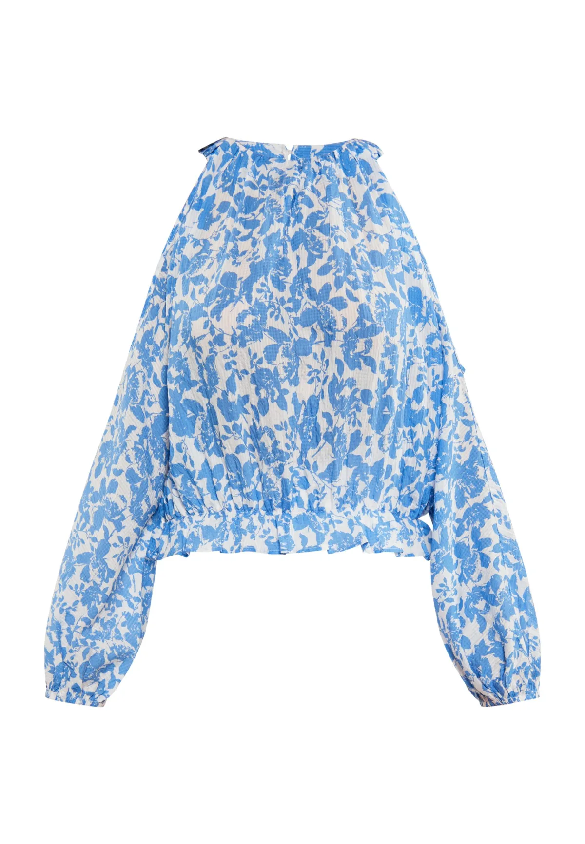 Ontdek een boeiende combinatie van elegantie en charme met deze unieke blouse met verleidelijke bloemenprint. Het heeft open schouders, lange mouwen die licht taps toelopen naar de pols en een halfronde halslijn. Deze blouse is perfect voor zomerfeestjes of andere speciale gelegenheden en straalt vrouwelijkheid uit met zijn losse pasvorm en geribde tailleband. Blouse