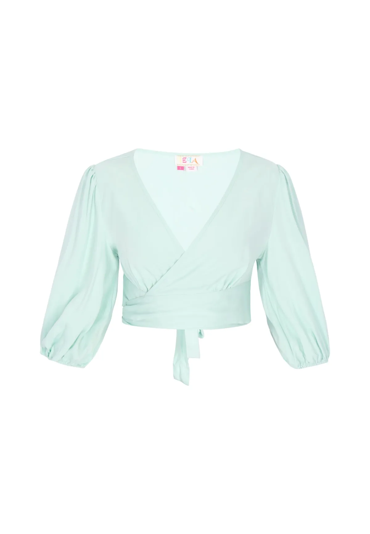 Blouse type: Blouseshirt; Design: Pofmouwen; Type sluiting: Riemsluiting; Materiaal: Viscose; Motief: Effen; Kraag: Zonder kraag; Details: Gedrapeerd, Wikkel design; Extra's: Op staal naden; Pasvorm: Normale pasvorm; Armlengte: Driekwart mouw; Lengte: Korte pasvorm