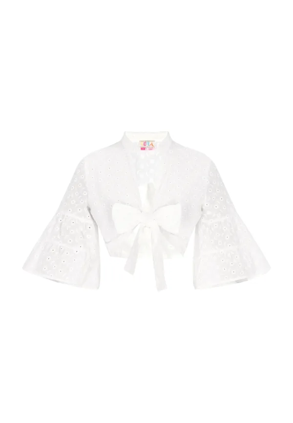 Blouse type: Klassieke blouse; Design: Om te knopen/binden; Materiaal: Katoen; Motief: Effen; Kraag: Zonder kraag; Details: Borduursels, Gedrapeerd, Mesh; Extra's: Op staal naden; Pasvorm: Normale pasvorm; Armlengte: Halve mouw; Lengte: Korte pasvorm