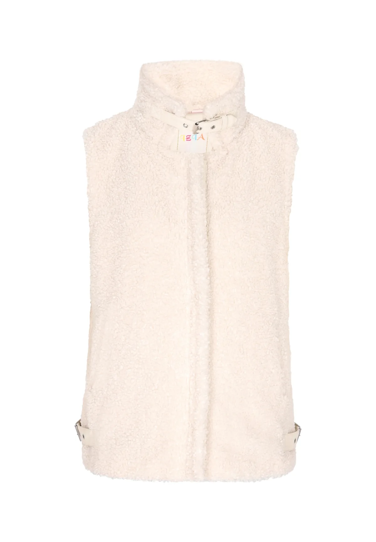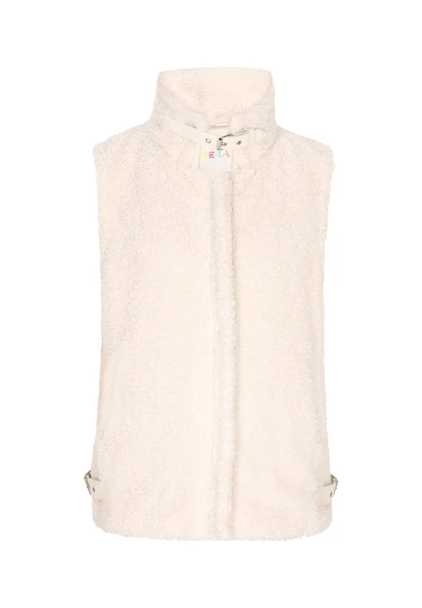 Dit mouwloze vest heeft een zachte en gestructureerde buitenkant die ultiem comfort en warmte biedt. De hoge kraag en ritssluiting aan de voorkant maken het aan- en uittrekken gemakkelijk, terwijl de kern warm blijft en de armen volledige bewegingsvrijheid hebben. Verstelbare bandjes aan de zijkant met metalen gespen zorgen voor een perfecte pasvorm in de taille. Waistcoat