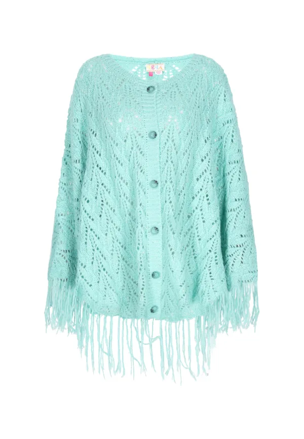 Design: Gefranjerde zoom, Knop placket, Knop sluiting; Type sluiting: Knoopsluiting; Halstype: Ronde hals; Motief: Effen; Details: Franjes, Mesh; Extra's: Op staal naden; Pasvorm: Losse pasvorm; Armlengte: Lange mouw; Lengte: Normale lengte