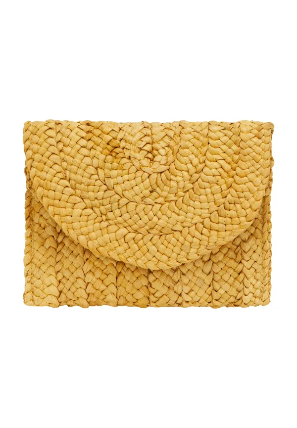 Design: Ruim hoofdvak; Type sluiting: Magnetische sluiting; Motief: Bloemenprint; Materiaal: Stro materiaal; Extra's: Gestructureerd oppervlak; Maat: Klein