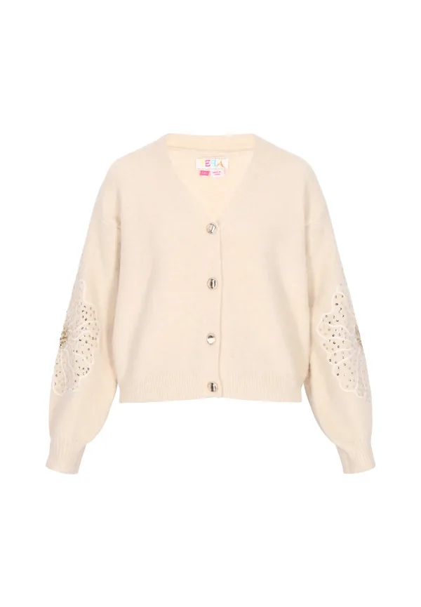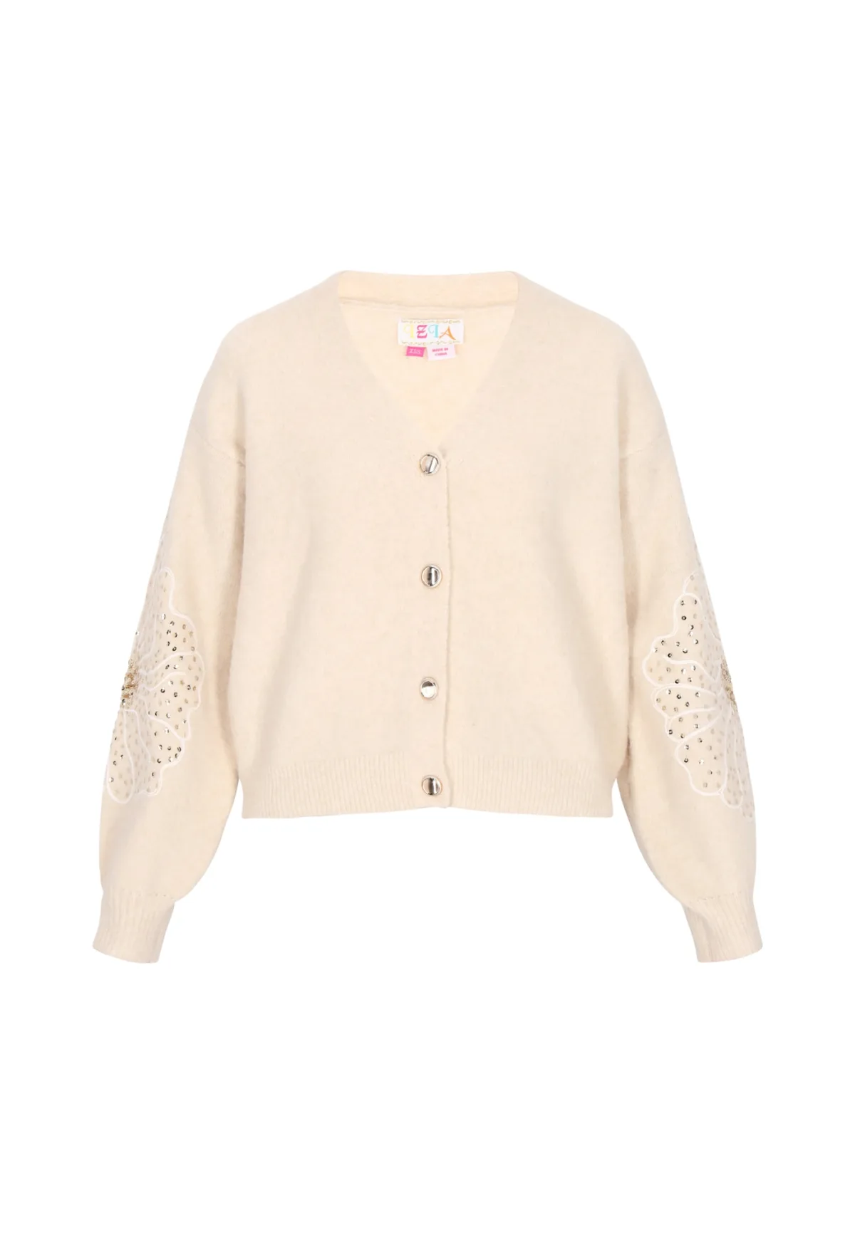 Design: Knop placket; Type sluiting: Knoopsluiting; Materiaal: Knitwear; Halstype: V-hals; Motief: Bloemenprint; Details: Pailletten, Borduursels; Extra's: Op staal naden; Pasvorm: Normale pasvorm; Armlengte: Lange mouw; Lengte: Normale lengte