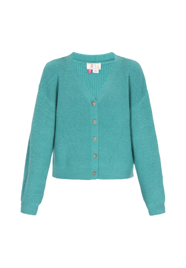 IZIA Gebreid vest ‘Boho’ turquoise
