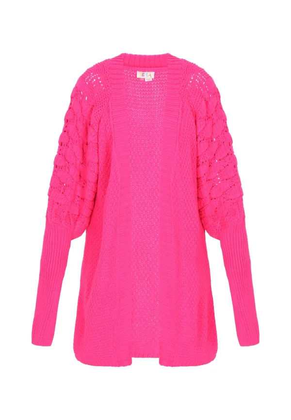 Design: Geribbelde kraag, Raglanmouwen, Geribd ceintuurtje; Type sluiting: Open; Materiaal: Knitwear; Motief: Effen; Details: Mesh; Extra's: Visnet brei, Fully fashioned, Voelt zacht aan; Pasvorm: Losse pasvorm; Armlengte: Lange mouw; Lengte: Lange pasvorm