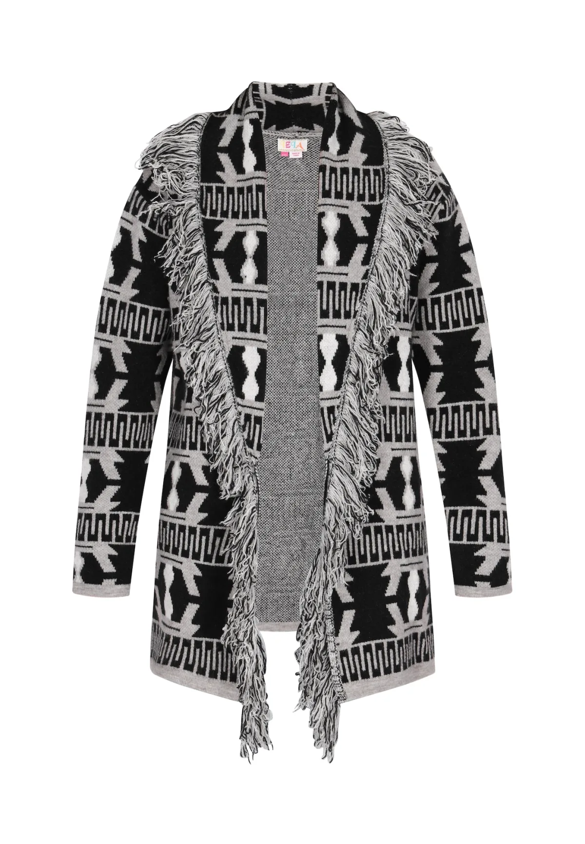 Design: Zonder sluiting; Materiaal: Knitwear; Motief: Aztec print; Details: Franjes; Extra's: All-over patroon; Pasvorm: Losse pasvorm; Armlengte: Lange mouw; Lengte: Lange pasvorm