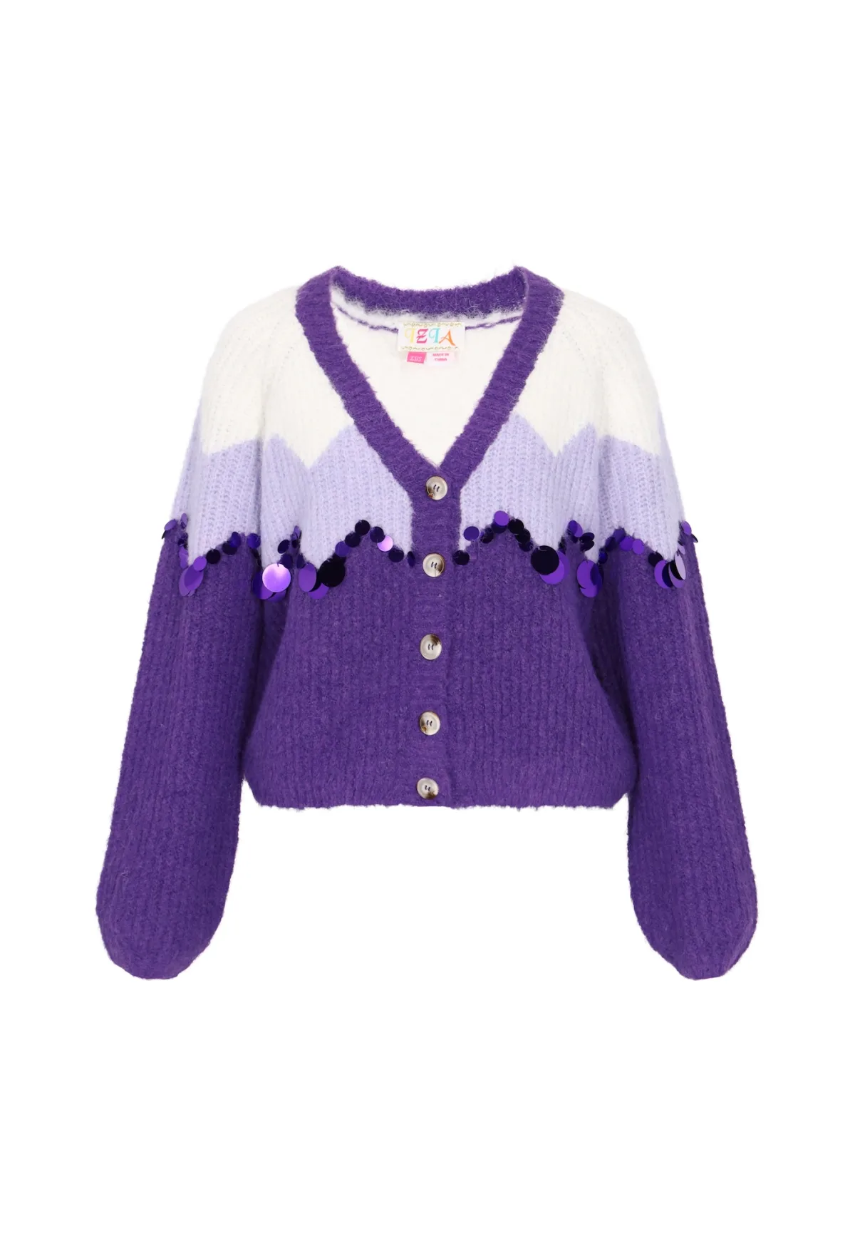 Design: Geribbelde kraag; Type sluiting: Knoopsluiting; Materiaal: Knitwear; Halstype: V-hals; Details: Pailletten; Extra's: Applicaties; Pasvorm: Wijde pasvorm; Armlengte: Lange mouw; Lengte: Normale lengte