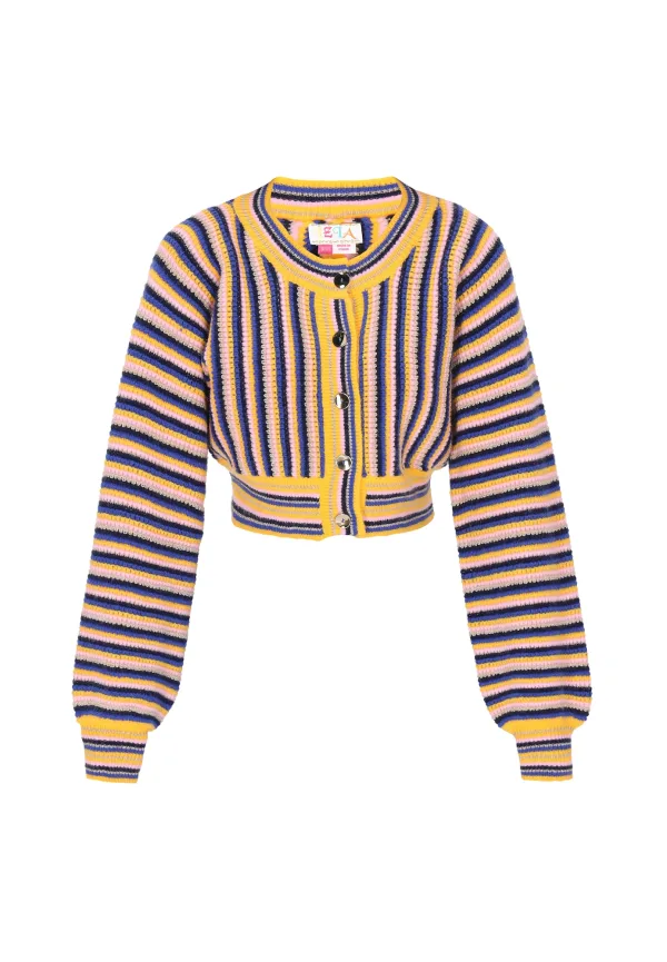 Design: Extra lange mouwen, Geribd ceintuurtje; Type sluiting: Knoopsluiting; Materiaal: Knitwear; Halstype: Ronde hals; Motief: Gestreept; Extra's: All-over patroon, Met textuur; Pasvorm: Normale pasvorm; Armlengte: Lange mouw; Lengte: Korte pasvorm