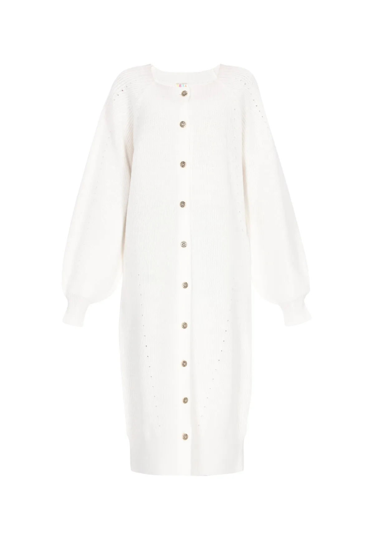 Design: Raglanmouwen, Geribd ceintuurtje; Type sluiting: Knoopsluiting; Materiaal: Knitwear; Halstype: Ronde hals; Motief: Effen; Details: Mesh; Extra's: Op staal naden; Pasvorm: Normale pasvorm; Armlengte: Lange mouw; Lengte: Lange pasvorm