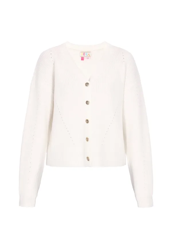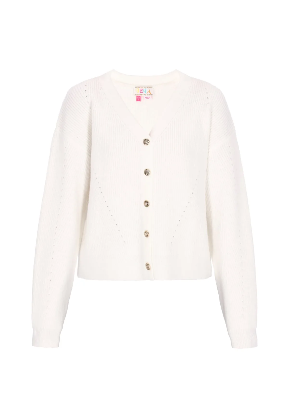Design: Rechte zoom, Knop placket, Geribd ceintuurtje; Type sluiting: Knoopsluiting; Materiaal: Knitwear; Halstype: V-hals; Motief: Effen; Details: Mesh; Extra's: Fully fashioned, Voelt zacht aan; Pasvorm: Normale pasvorm; Armlengte: Lange mouw; Lengte: Normale lengte