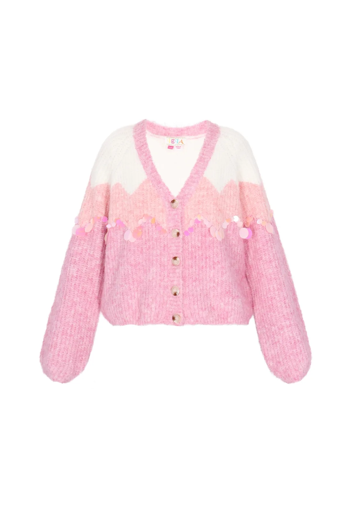 Design: Knop placket, Geribd ceintuurtje; Type sluiting: Knoopsluiting; Materiaal: Knitwear; Halstype: V-hals; Details: Pailletten; Extra's: Glitterend; Pasvorm: Wijde pasvorm; Armlengte: Lange mouw; Lengte: Normale lengte