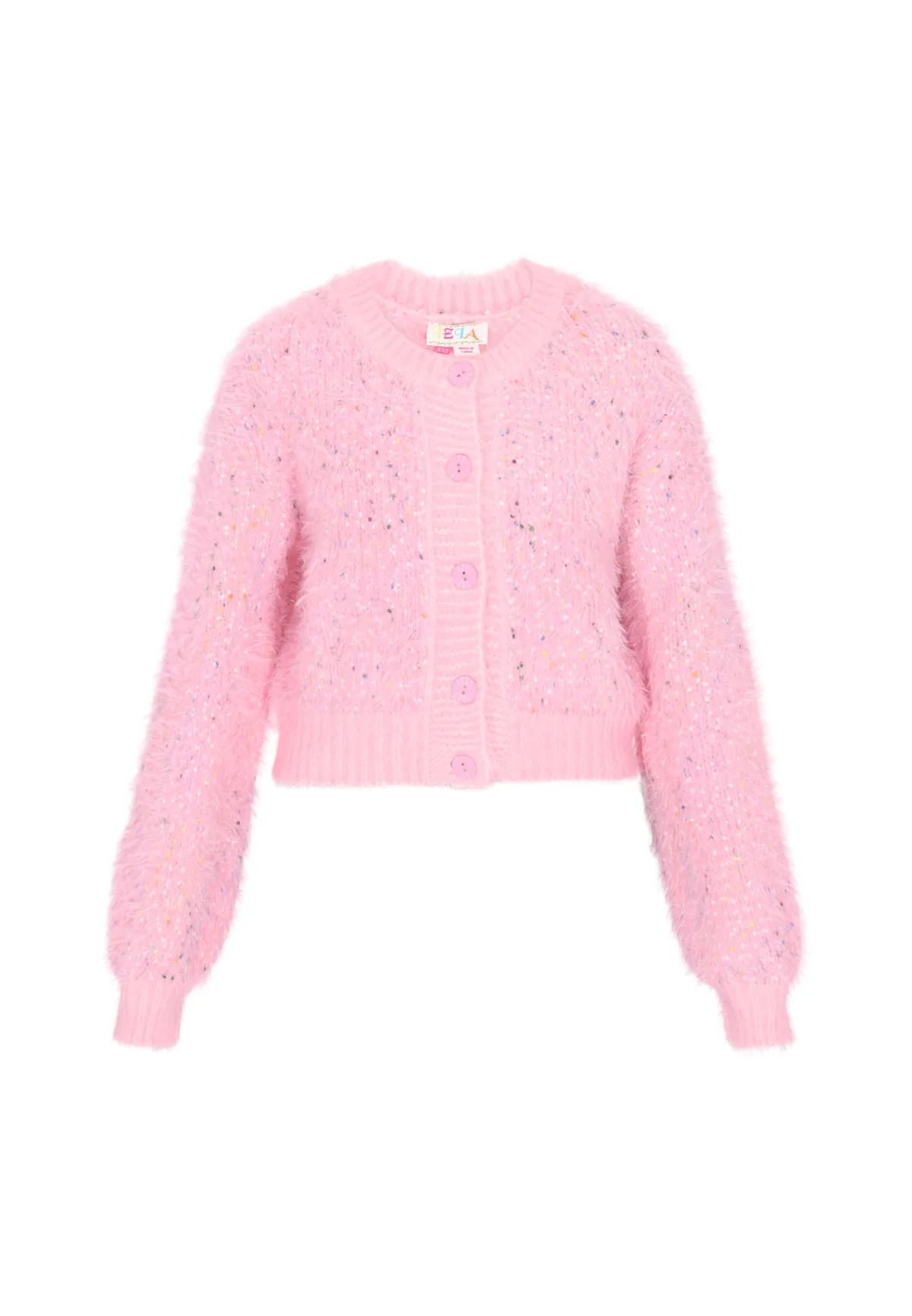 Design: Geribbelde kraag, Knop placket, Pofmouwen, Geribd ceintuurtje; Type sluiting: Knoopsluiting; Materiaal: Knitwear; Halstype: Ronde hals; Motief: Mélange; Extra's: Op staal naden; Pasvorm: Normale pasvorm; Armlengte: Lange mouw; Lengte: Normale lengte