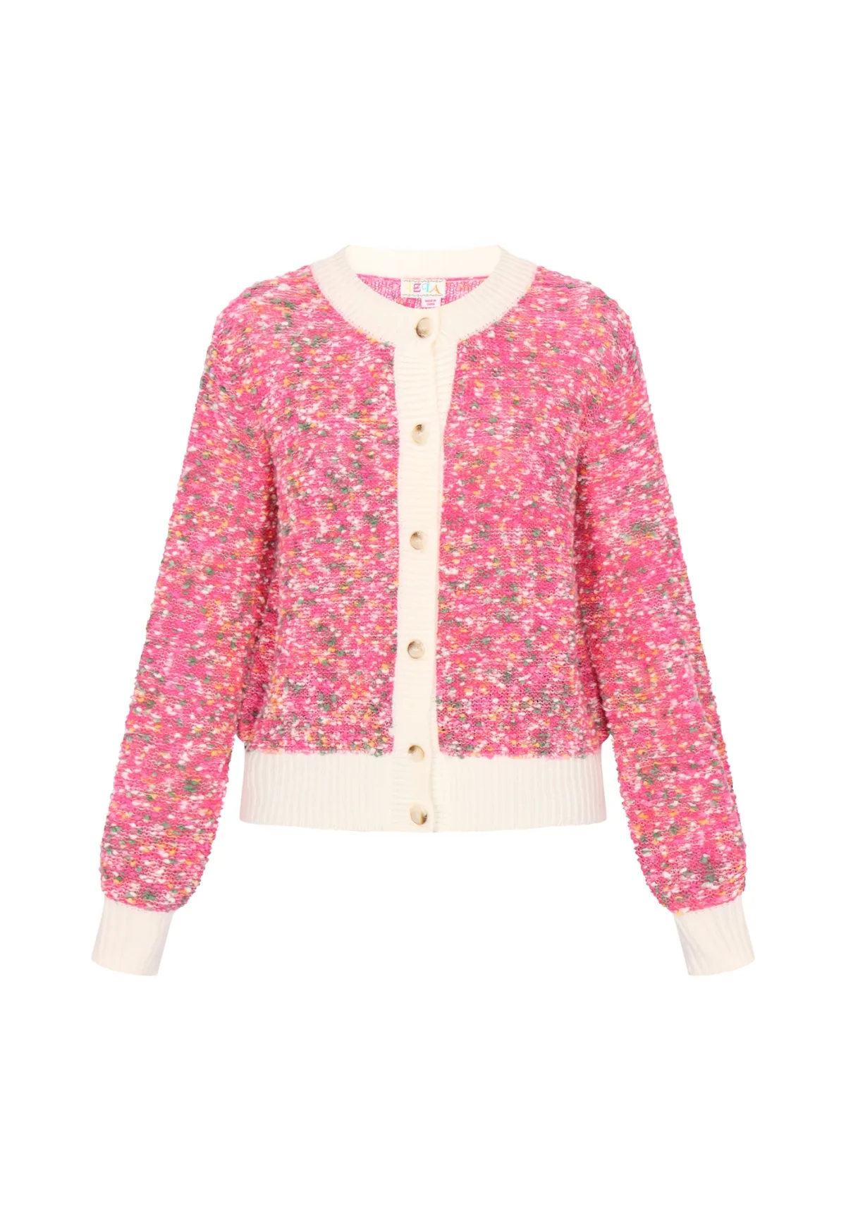Design: Geribbelde kraag, Geribd ceintuurtje; Type sluiting: Knoopsluiting; Materiaal: Knitwear; Halstype: Ronde hals; Motief: Color-Blocking; Extra's: All-over patroon, Label patch/label flag, Voelt zacht aan, Bouclé; Pasvorm: Normale pasvorm; Armlengte: Lange mouw; Lengte: Normale lengte