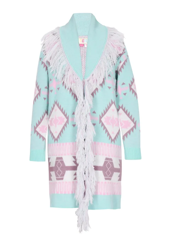 Design: Rechte zoom; Materiaal: Knitwear; Motief: Aztec print; Details: Franjes; Extra's: All-over patroon; Pasvorm: Normale pasvorm; Armlengte: Lange mouw; Lengte: Lange pasvorm