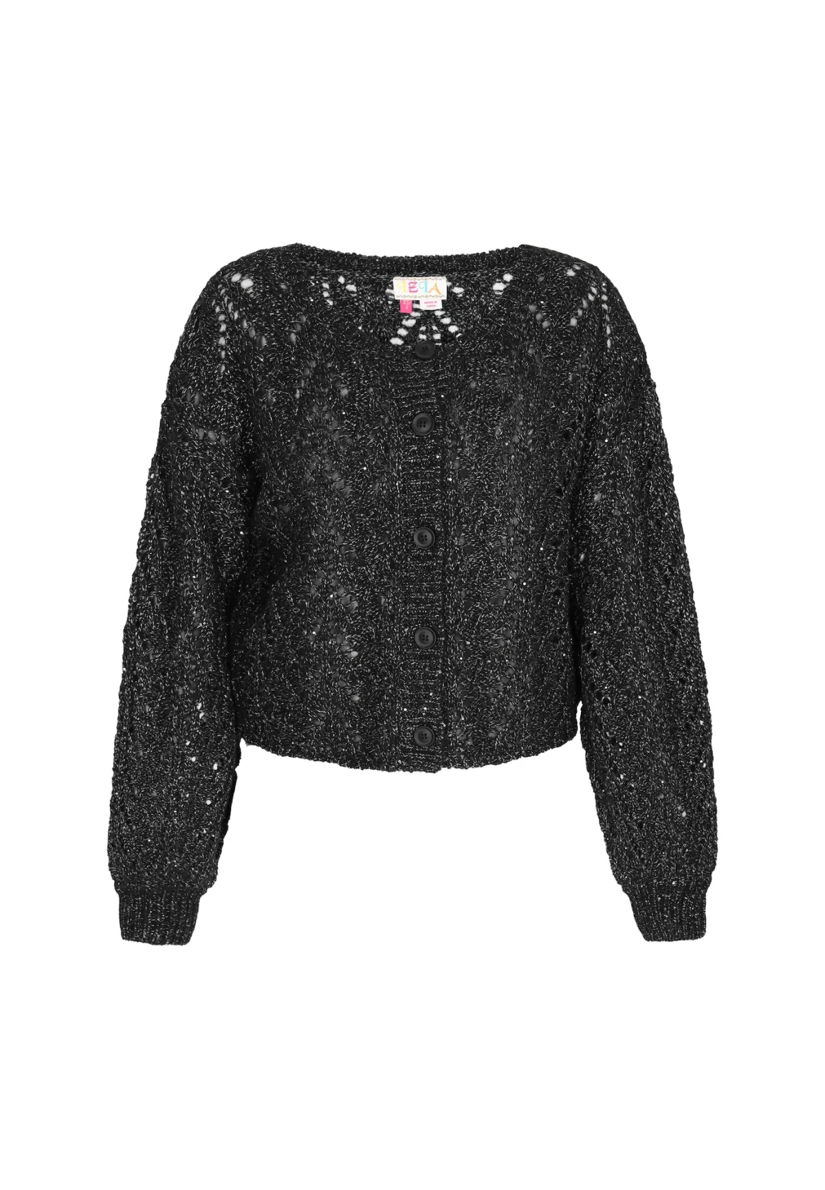 Design: Geribbelde kraag, Geribd ceintuurtje; Type sluiting: Knoopsluiting; Materiaal: Knitwear; Halstype: Ronde hals; Motief: Effen; Details: Mesh; Extra's: Glitterend, Licht transparant, Op staal naden; Pasvorm: Wijde pasvorm; Armlengte: Lange mouw; Lengte: Normale lengte