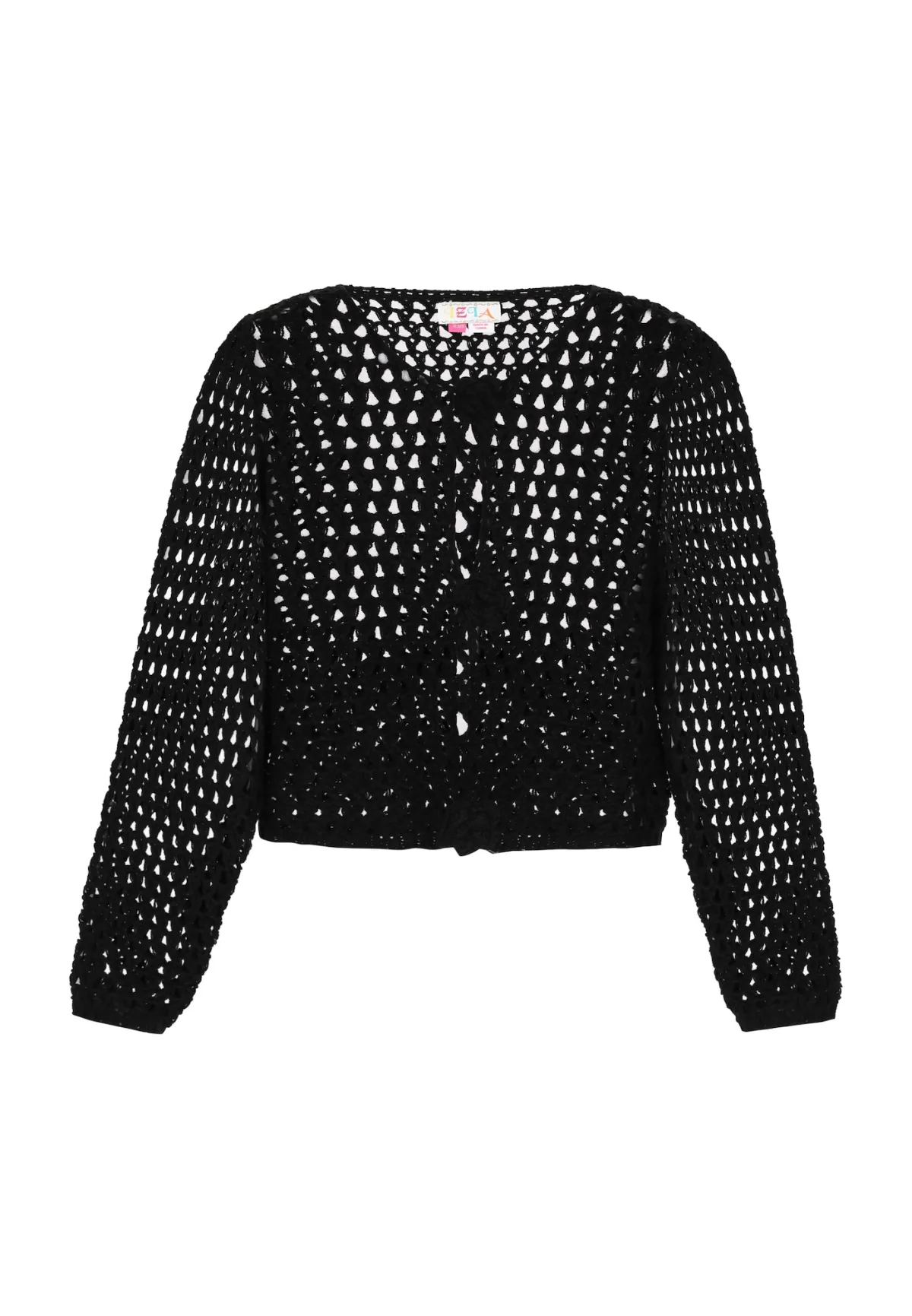 Design: Geribd ceintuurtje; Type sluiting: Knoopsluiting; Materiaal: Knitwear; Halstype: Ronde hals; Motief: Effen; Details: Mesh; Extra's: Licht transparant; Pasvorm: Normale pasvorm; Armlengte: Lange mouw; Lengte: Normale lengte