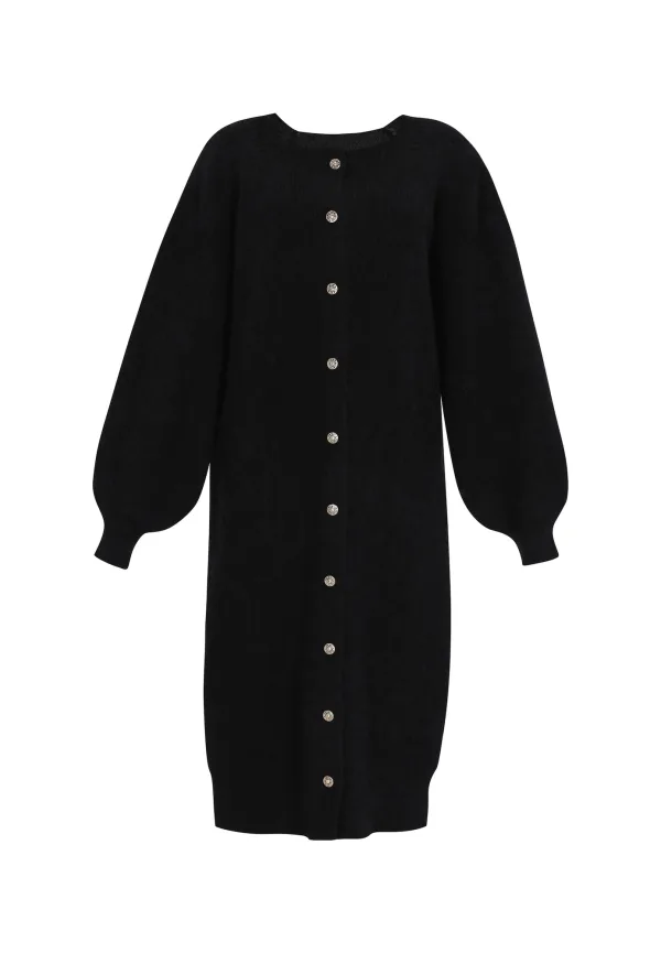 Design: Knop placket, Raglanmouwen, Geribd ceintuurtje; Type sluiting: Knoopsluiting; Materiaal: Knitwear; Halstype: Ronde hals; Motief: Effen; Details: Mesh; Extra's: Op staal naden; Pasvorm: Normale pasvorm; Armlengte: Lange mouw; Lengte: Lange pasvorm