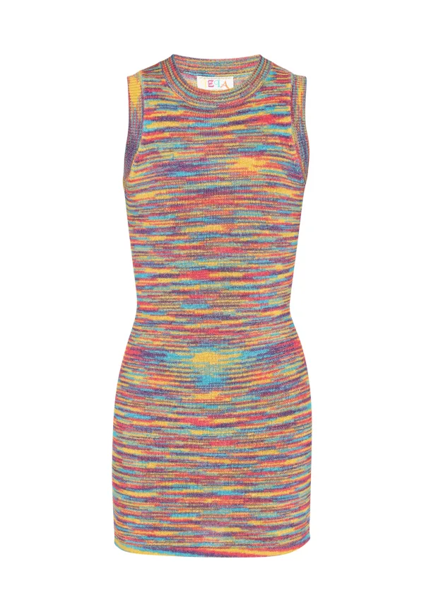IZIA Gebreide jurk ‘Boho’ aqua / goudgeel / lila / kersrood
