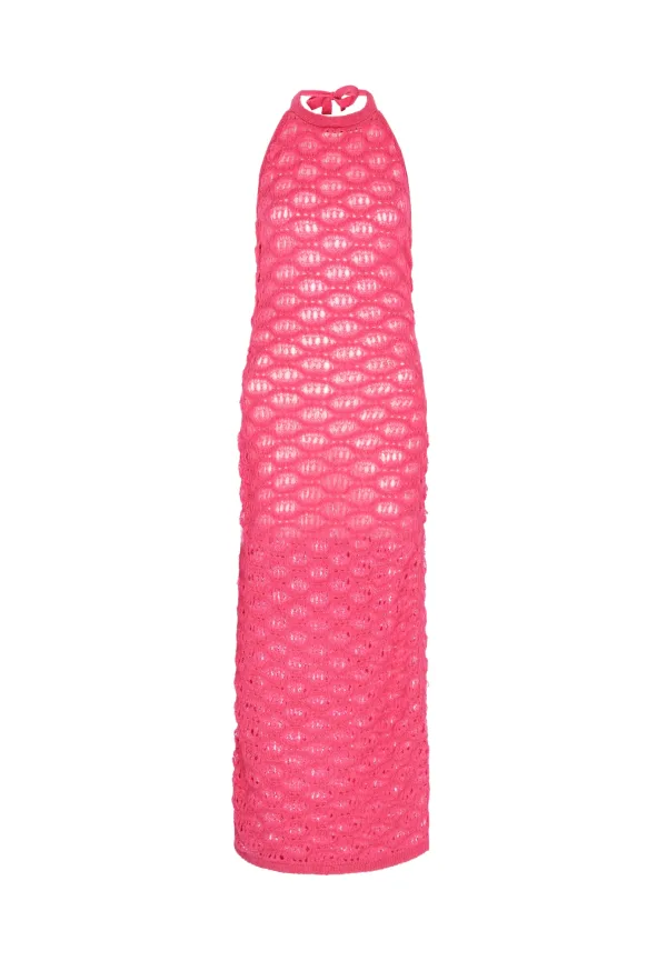 Design: Om te knopen/binden; Materiaal: Gehaakt; Halstype: Ronde hals; Motief: Effen; Soort bandjes: Haltermodel; Details: Mesh, Backless; Extra's: Fully fashioned; Lengte: Lang/maxi; Snit: Figuur omarmend; Pasvorm: Slanke pasvorm; Armlengte: Mouwloos
