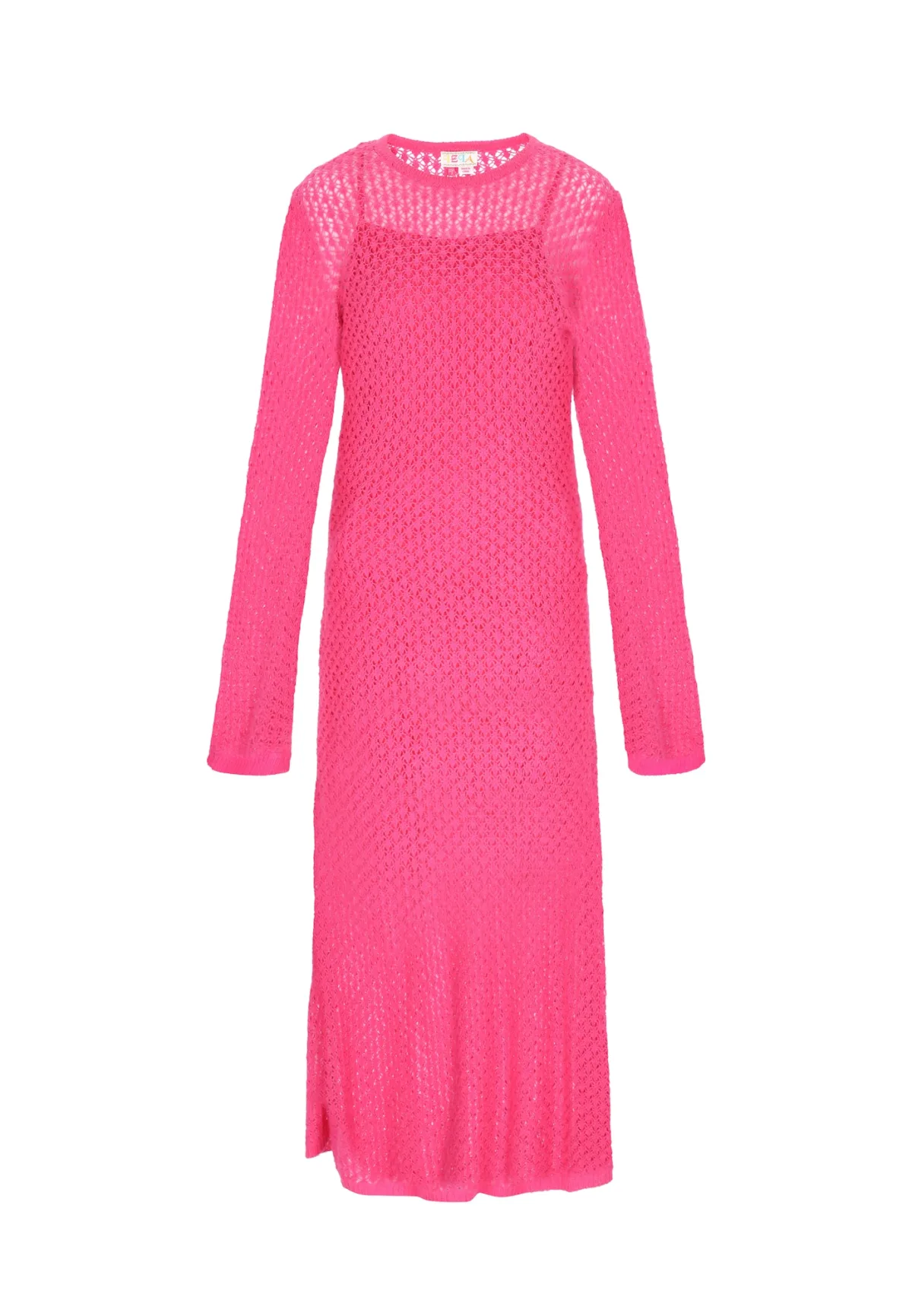 Design: Geribbelde kraag, Geribd ceintuurtje; Type sluiting: Slip; Materiaal: Knitwear; Halstype: Ronde hals; Motief: Effen; Details: Mesh; Extra's: Licht transparant, Fully fashioned, Met textuur; Lengte: Lang/maxi; Snit: Getailleerd; Pasvorm: Normale pasvorm; Armlengte: Lange mouw