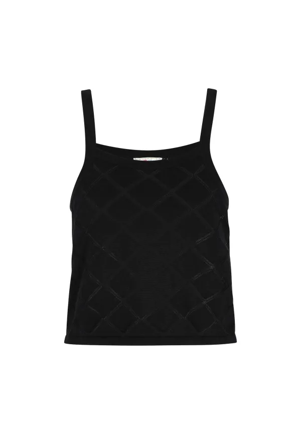 Design: Gevoerde zoom/rand; Materiaal: Knitwear; Halstype: Carréhals; Motief: Effen; Soort bandjes: Normale bandjes; Details: Mesh; Extra's: Op staal naden, Perforatie; Pasvorm: Normale pasvorm; Armlengte: Mouwloos; Lengte: Normale lengte