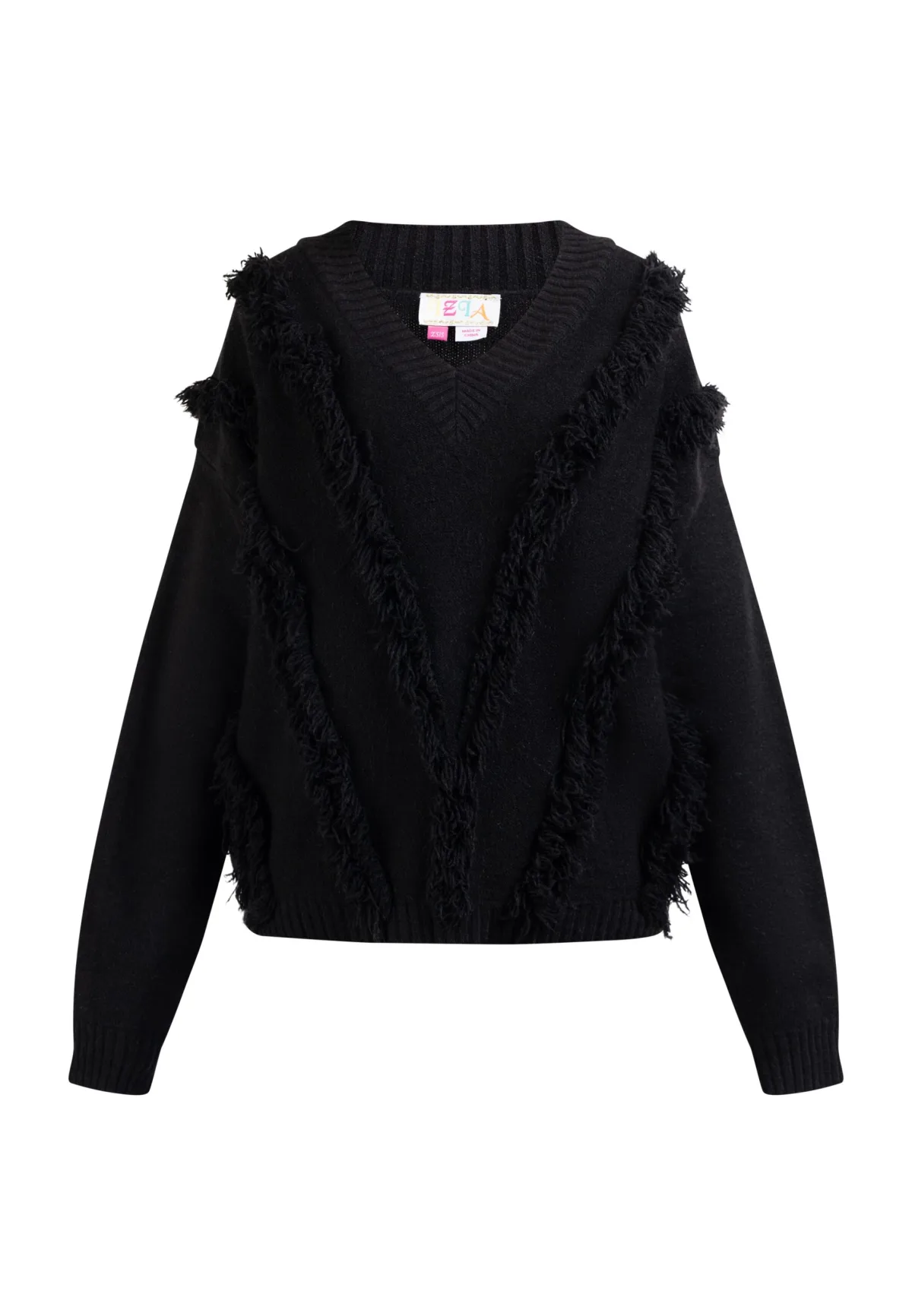 Vrolijke vibraties, zelfs op koude winterdagen? Met deze ruimvallende gebreide trui van IZIA komen ze helemaal vanzelf. Dat komt door de asymmetrische franjes aan de voorkant. Kleine geribde boorden en een V-hals ronden het ontwerp af, dat bijzonder goed past bij de nieuwste denimlooks.