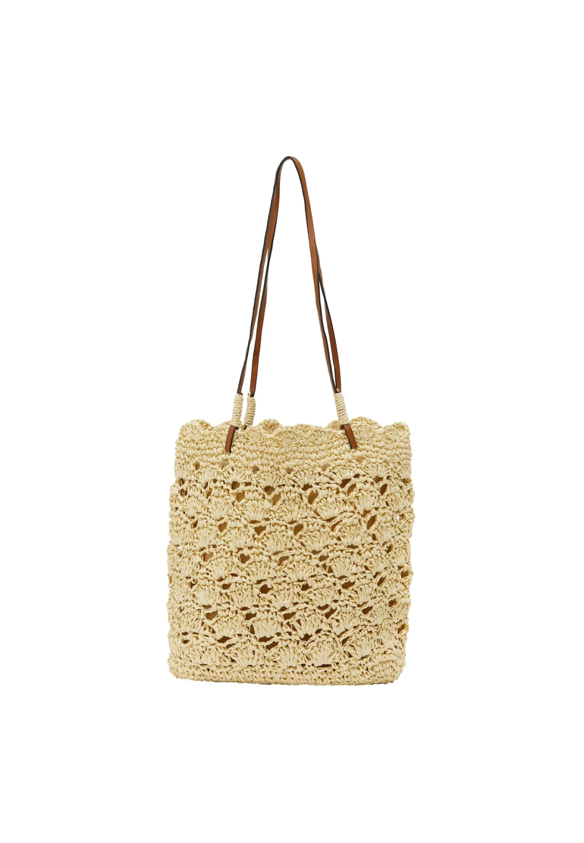 Design: Binnenzak; Type sluiting: Koord; Motief: Effen; Materiaal: Imitatieleer, Stro materiaal; Extra's: Met textuur; Hengsellengte: Korte schouderriemen