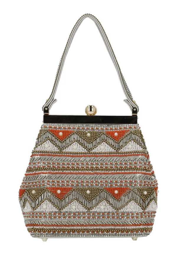 Specificaties: IZIA Handtas goud / oranje / zilver / parelwit