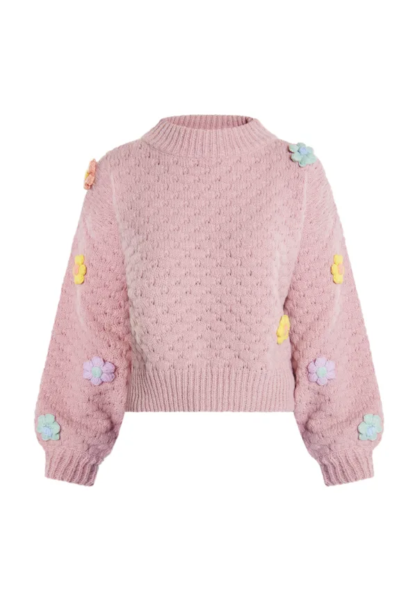 Deze gezellige grofgebreide trui van IZIA maakt je herfst-winter gebreide outfits compleet. Het zachte garen is losjes gebreid en heeft een casual fit met een kleine, geribde opstaande kraag. Bijzonder opvallend zijn de kleurrijke bloemen van garen, die de trui een speelse touch geven. Het ontwerp wordt tenslotte geaccentueerd door de brede geribde boorden. Jumper