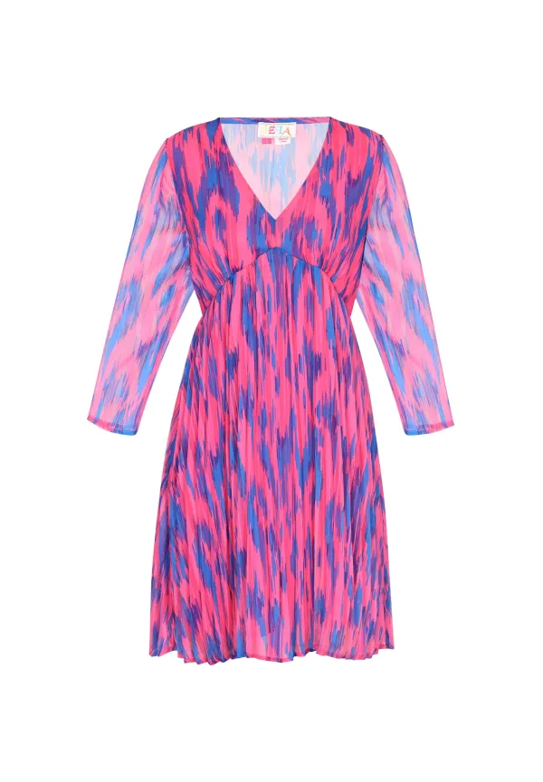 Design: Gevoerde zoom/rand; Type sluiting: Slip; Halstype: V-hals; Details: Plissé; Extra’s: All-over patroon, Oplichtende stof, Wijdte verstelbaar; Lengte: Knielengte; Pasvorm: Normale pasvorm; Armlengte: Lange mouw