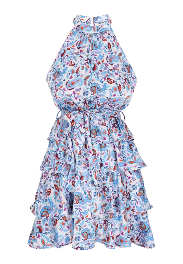 Design: Gevoerde zoom/rand, Met riem; Type sluiting: Ritssluiting; Halstype: Opstaande kraag; Motief: Paisley; Soort bandjes: Haltermodel; Details: Plooien; Extra’s: All-over patroon, Gladde stof; Lengte: Kort/mini; Pasvorm: Normale pasvorm; Armlengte: Mouwloos
