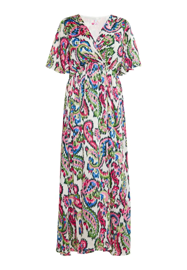Ontdek de charme van de maxi-jurk modern paisley. Het ingewikkelde patroon, de V-hals en luchtige korte mouwen geven het een chique vakantie- of zomerlook. Deze jurk is aansluitend in de taille en heeft een slank silhouet. De losvallende jurk biedt comfort en stijl in één kledingstuk. Perfect voor wie op zoek is naar een casual en toch verfijnd ensemble. Jurk
