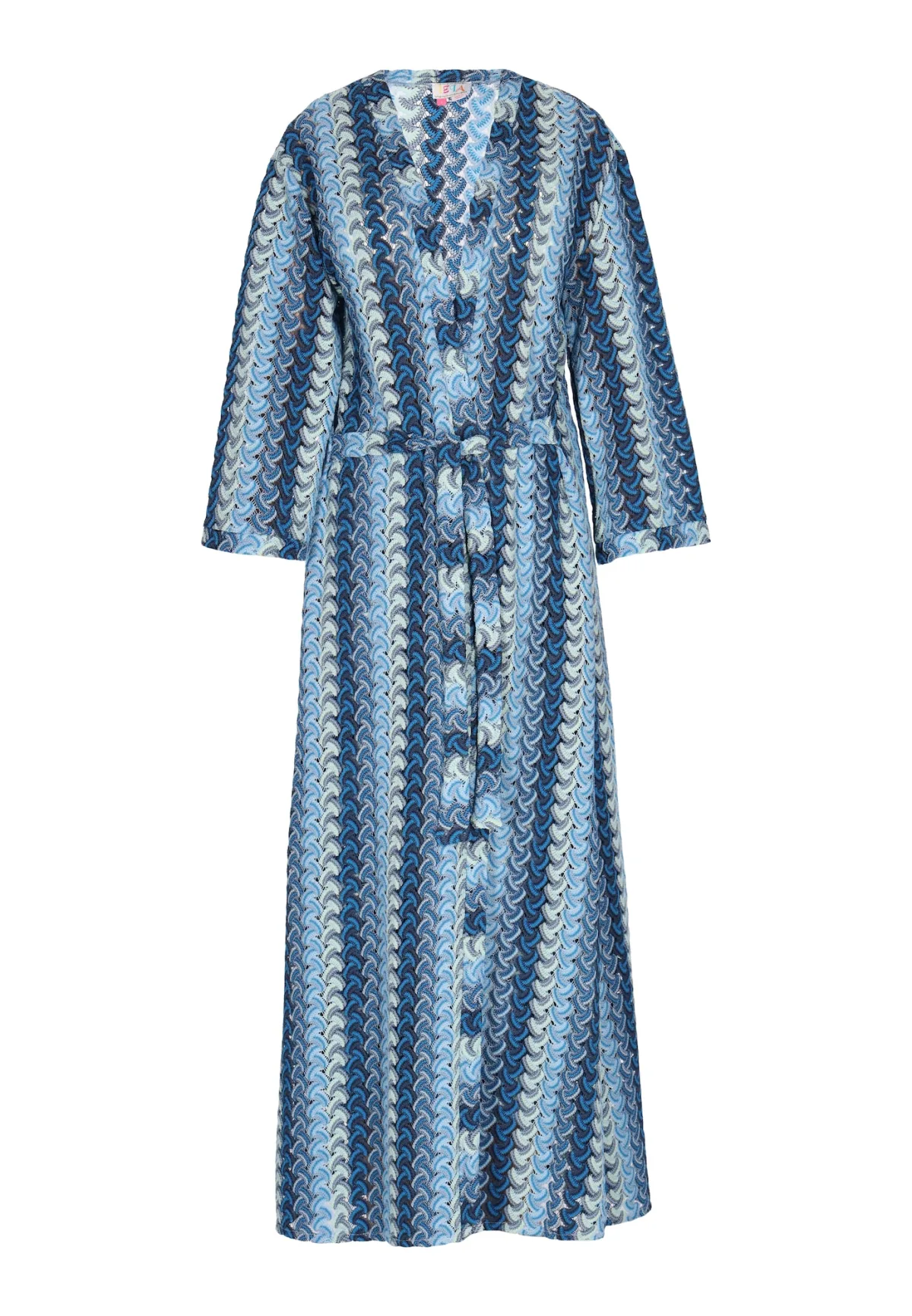 Introductie van een chique toevoeging aan je zomergarderobe: de lange poncho met geometrisch patroon. Deze gebreide lange poncho heeft een V-halslijn, lange mouwen en een nauwsluitende taille met een strikceintuur voor een flatterend silhouet. Het zwierige broekje zorgt voor beweging tijdens het dragen. Deze poncho is perfect voor vakantie- of casual zomerkleding en kan gemakkelijk worden gecombineerd met een bikini. Kimono