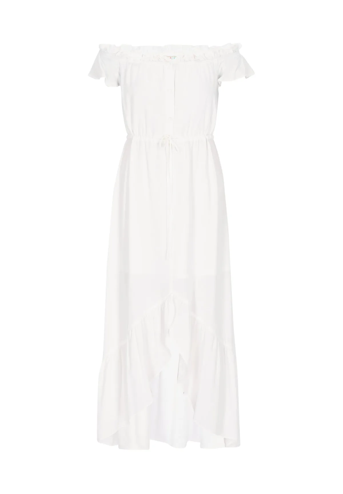 Design: Asymmetrische zoom, Rechte manchetten, Knop placket; Type sluiting: Slip; Materiaal: Viscose; Halstype: Carmen hals; Motief: Effen; Details: Volant; Extra's: Verstelbare taille, Op staal naden; Lengte: Lang/maxi; Pasvorm: Normale pasvorm; Armlengte: Kwartmouw
