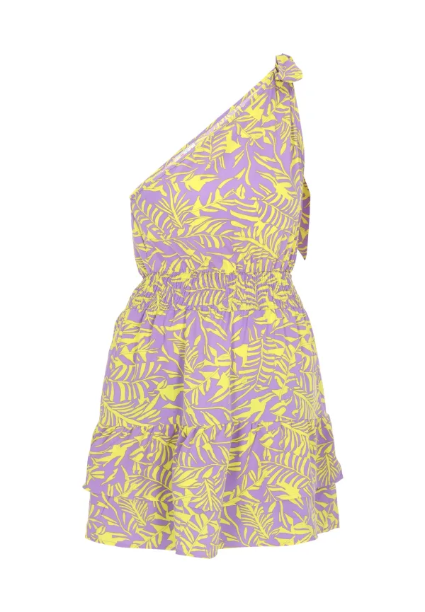 Design: Elastische taille/zoom, Om te knopen/binden; Motief: Bloemenprint; Soort bandjes: One-shoulder; Details: Volant, Gedrapeerd; Extra's: All-over patroon, Buigzame grip; Lengte: Kort/mini; Snit: Getailleerd; Pasvorm: Normale pasvorm; Armlengte: Mouwloos